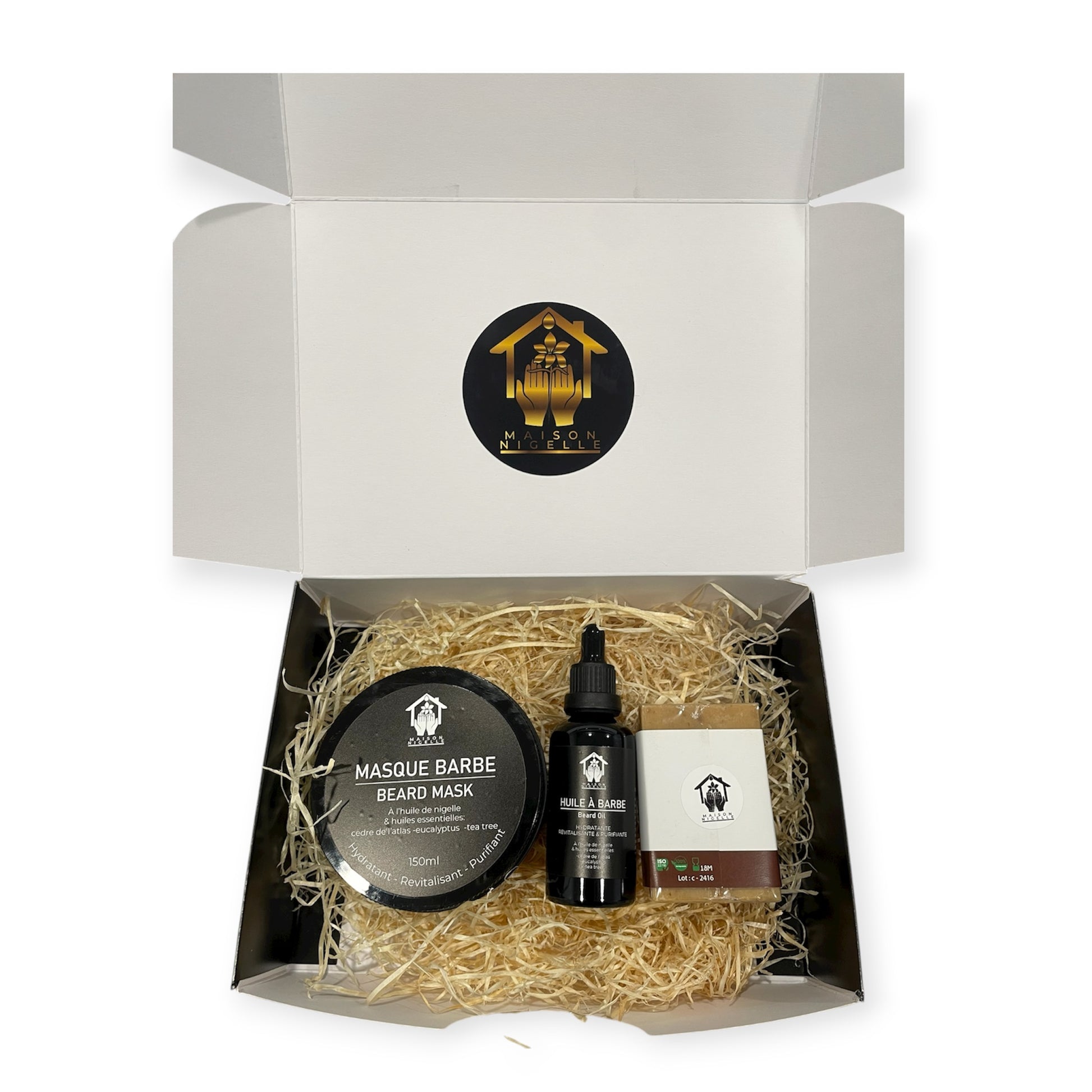 Le Coffret Soin Barbe à la Nigelle Maison Nigelle a été conçu pour répondre aux besoins essentiels de la barbe : propreté, nutrition, fortification et esthétique.
